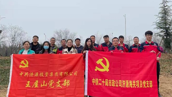 中共濟(jì)源市王屋山置業(yè)有限公司黨支部:以學(xué)習(xí)“黨的先烈、英雄模范事跡”為黨課主題,向黨員干部講解黨的斗爭史、革命史,號(hào)召黨員干部傳承紅色革命精神,繼承革命先烈血脈,始終保持飽滿的熱情在工作迸發(fā)不竭動(dòng)力。學(xué)以實(shí)踐,聯(lián)合海關(guān)項(xiàng)目黨支部開展黨史交流活動(dòng),組織黨員干部到愚公路小學(xué)進(jìn)行了黨員義務(wù)植樹活動(dòng)。
