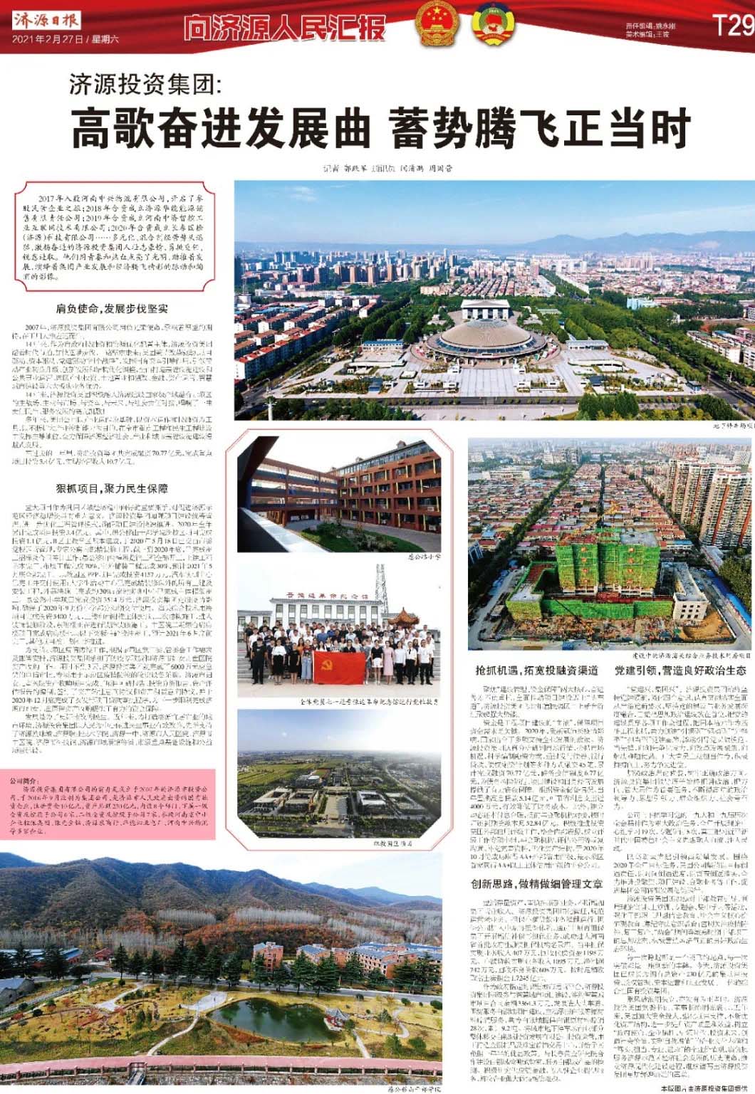 每一次跨越都是一個騰飛的起點,每一次突破都是一座創(chuàng)新的豐碑。今天,濟源投資集團已成長為擁有總資產(chǎn)230億元的集項目投資、股權(quán)管理、資本運營和實業(yè)發(fā)展于一體的綜合性國有投資集團。