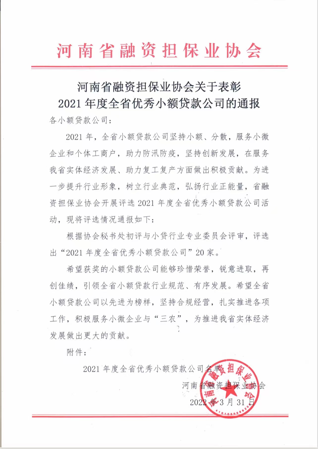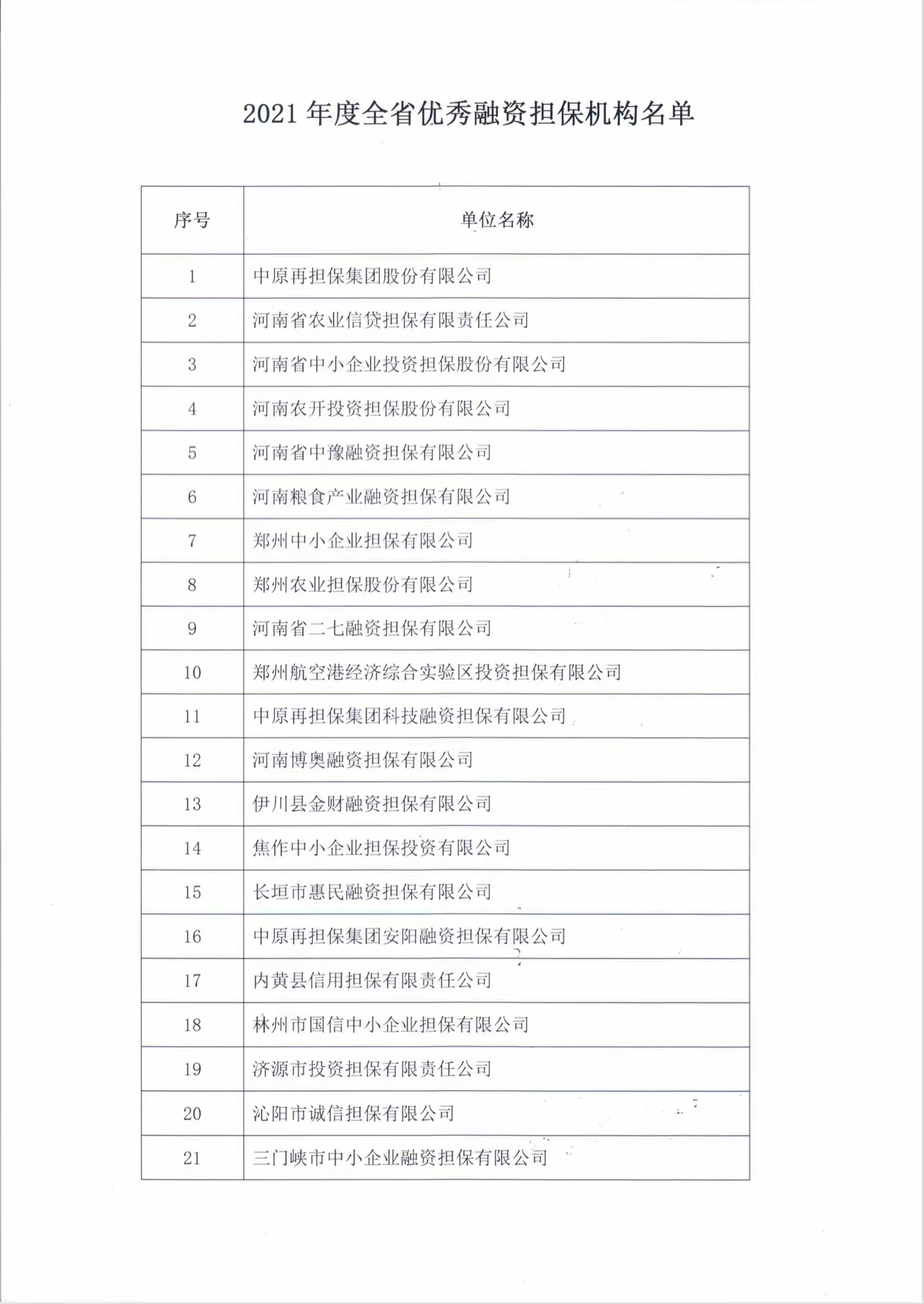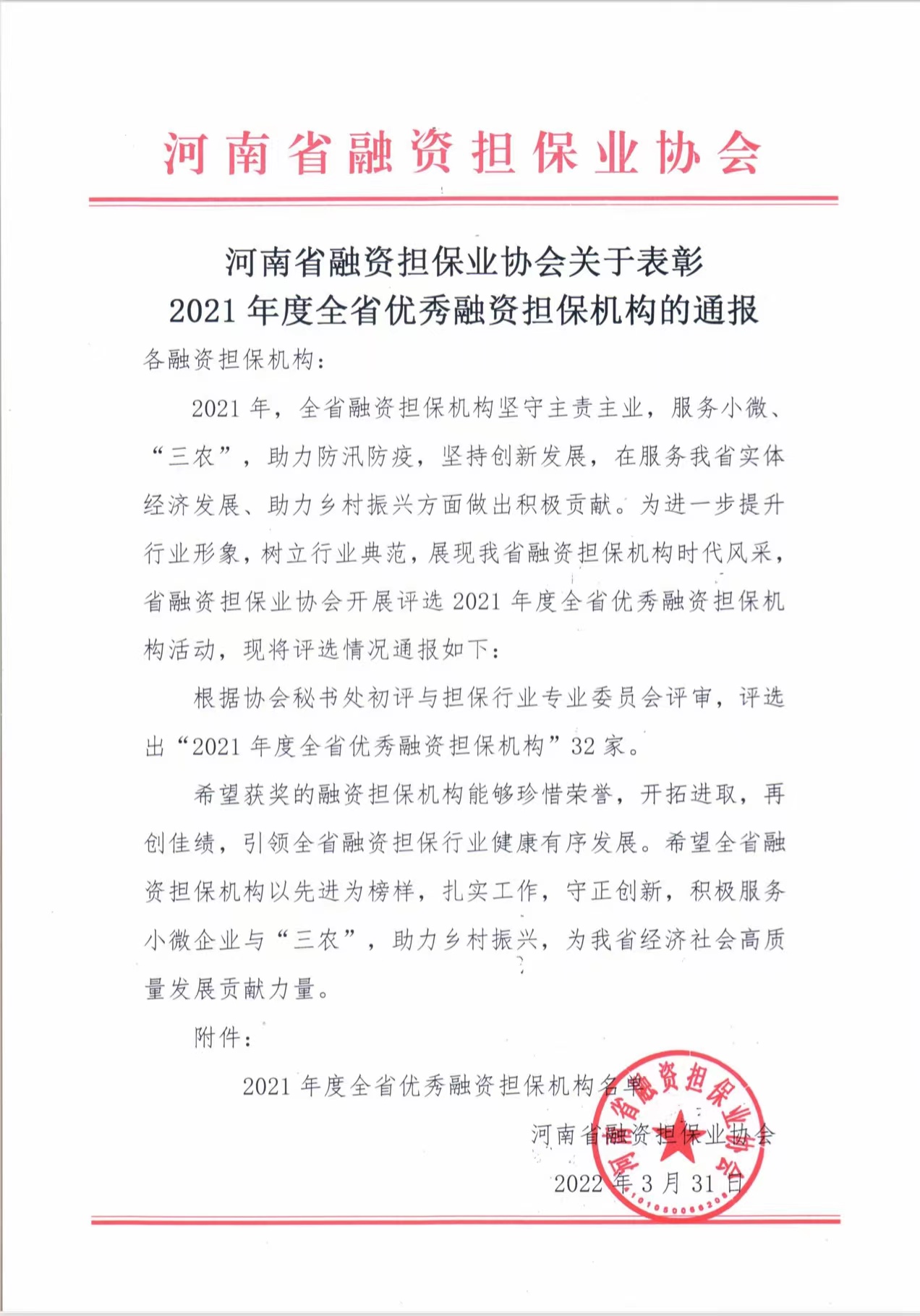 榮獲河南省融資擔(dān)保協(xié)會榮譽稱號