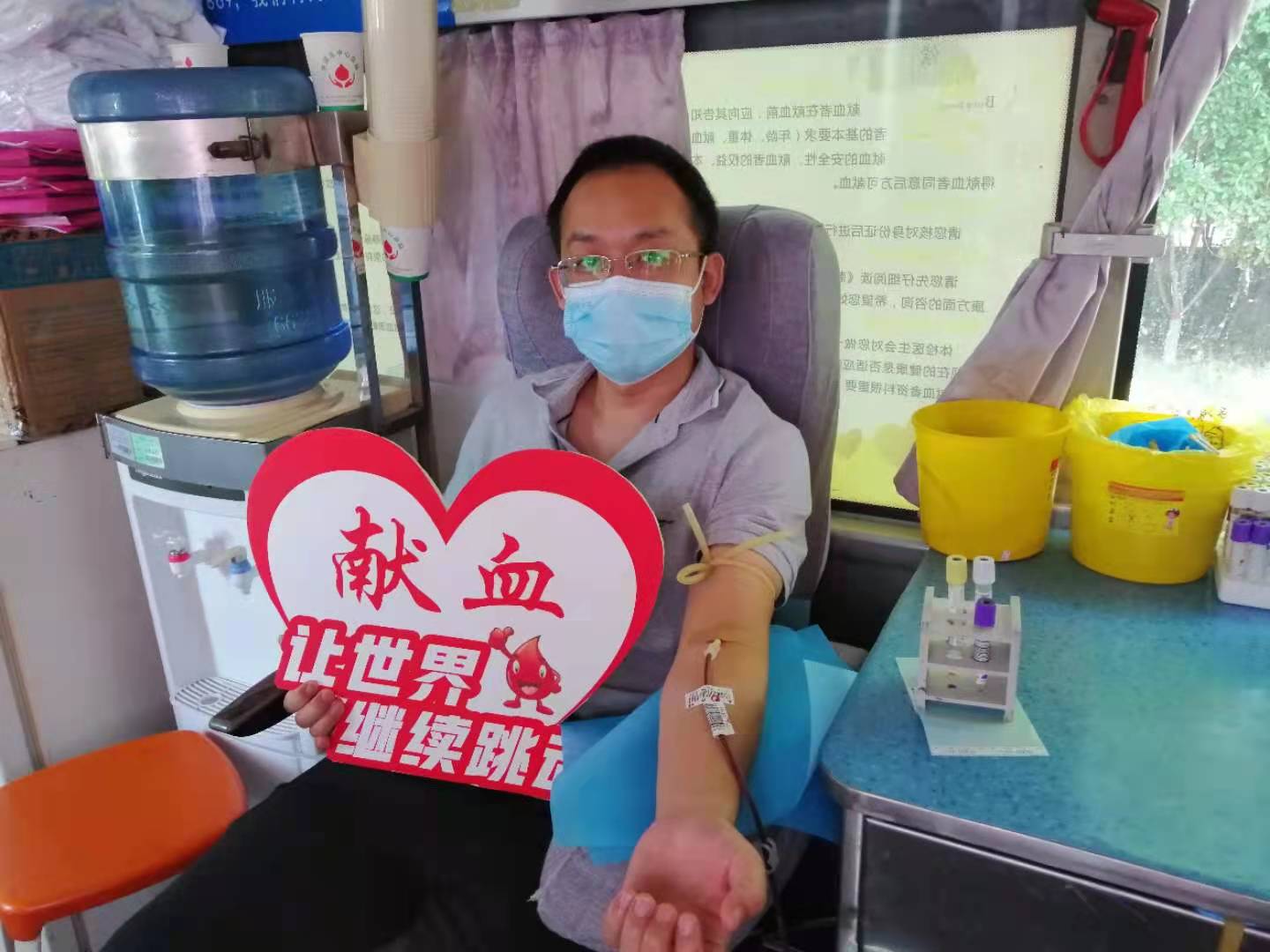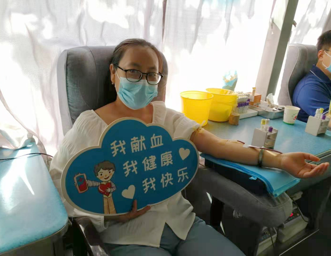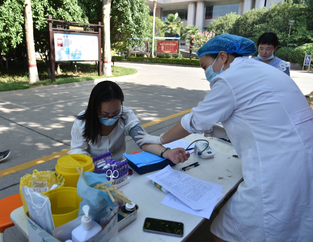雖然烈日當(dāng)空,但絲毫沒(méi)有影響大家的奉獻(xiàn)愛(ài)心的熱情?;顒?dòng)現(xiàn)場(chǎng),有堅(jiān)持多年獻(xiàn)血的“老面孔”、也有第一次獻(xiàn)血的“新生力量”,大家按照獻(xiàn)血流程積極配合醫(yī)護(hù)人員填表登記、量血壓、初篩化驗(yàn)、靜脈采血等工作。符合獻(xiàn)血標(biāo)準(zhǔn)的干部職工登上獻(xiàn)血車開(kāi)始獻(xiàn)血,一股股鮮紅的血液,順著導(dǎo)管流進(jìn)血袋,匯聚成一個(gè)個(gè)希望和愛(ài)心。