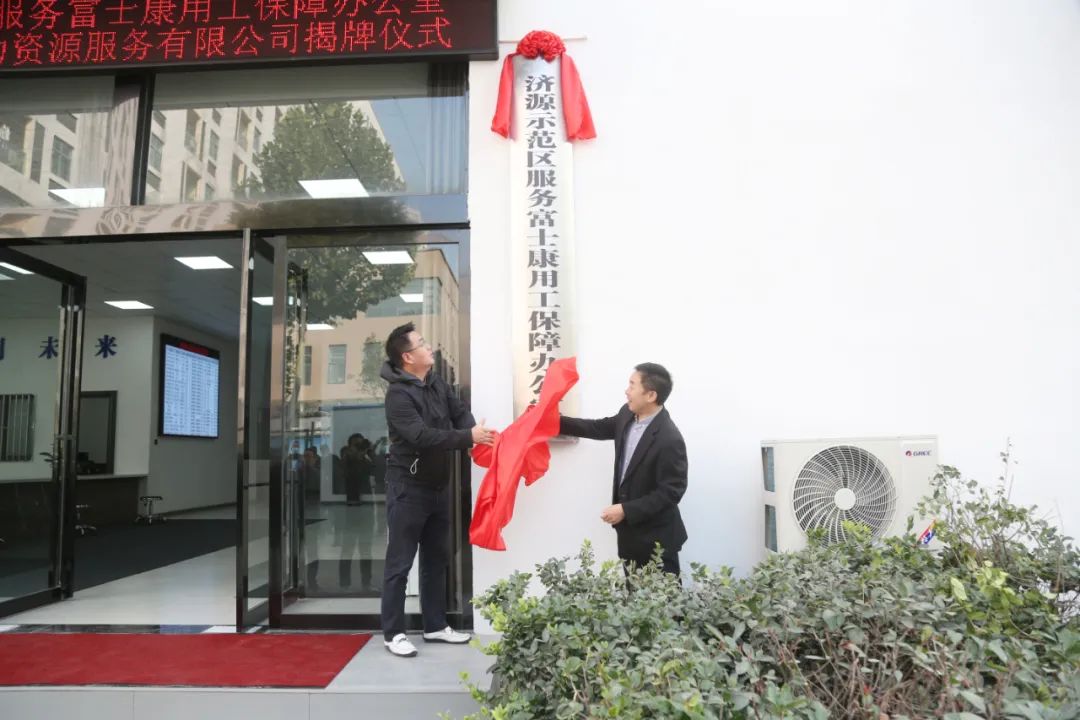 隨后,示范區(qū)管委會(huì)黨組成員、副市長(zhǎng)趙會(huì)生與富聯(lián)科技(濟(jì)源)有限公司顏敏琦共同為濟(jì)源示范區(qū)服務(wù)富士康用工保障辦公室揭牌!