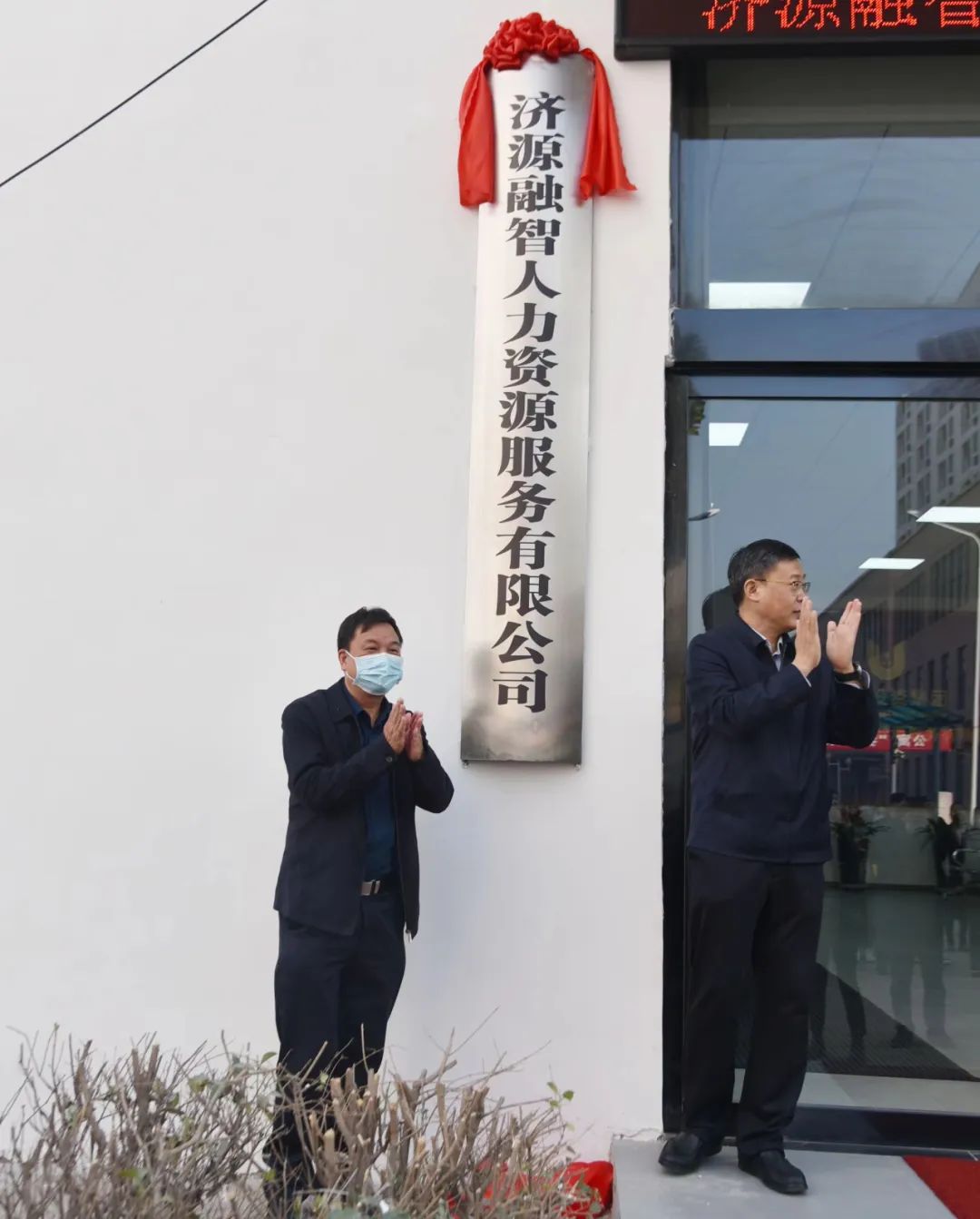 示范區(qū)人社局黨組書記、局長(zhǎng)王劍波與濟(jì)源投資集團(tuán)黨委書記、董事長(zhǎng)陳明亮共同為濟(jì)源融智人力資源服務(wù)有限公司揭牌!