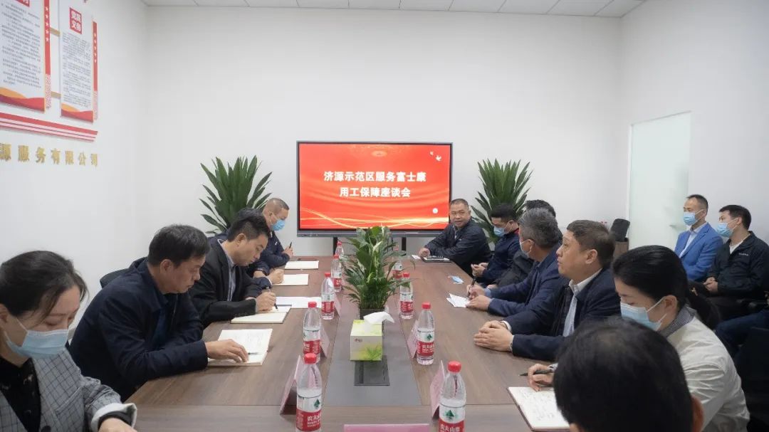 10月19日,濟(jì)源示范區(qū)服務(wù)富士康用工保障辦公室暨濟(jì)源融智人力資源服務(wù)有限公司揭牌儀式舉行。示范區(qū)管委會(huì)黨組成員、副市長(zhǎng)趙會(huì)生出席揭牌儀式,并與相關(guān)負(fù)責(zé)人進(jìn)行座談。示范區(qū)人社局黨組書記、局長(zhǎng)王劍波,濟(jì)源投資集團(tuán)黨委書記、董事長(zhǎng)陳明亮,黨委委員、副總經(jīng)理成新建參加。