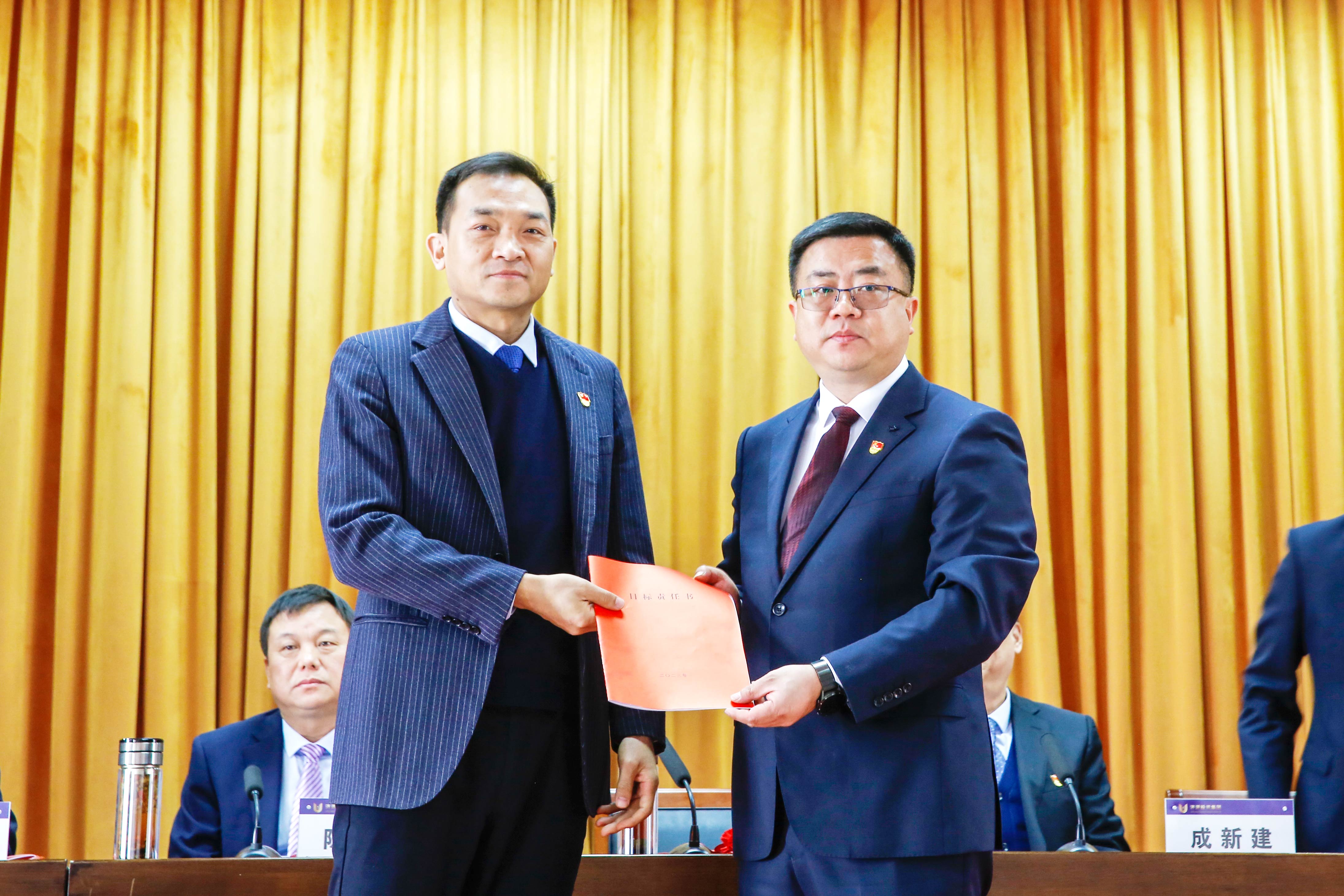 總經(jīng)理李慶軍代表集團(tuán)公司經(jīng)營(yíng)層向董事會(huì)遞交2023年度目標(biāo)責(zé)任書(shū)