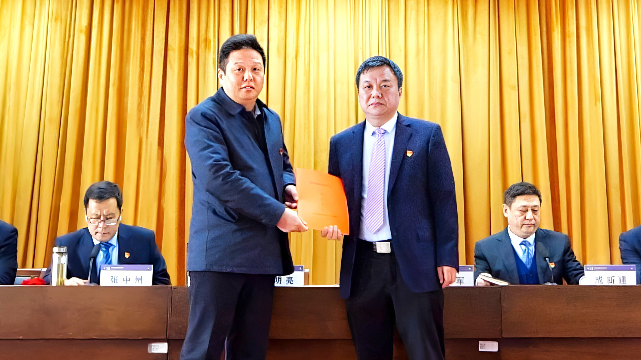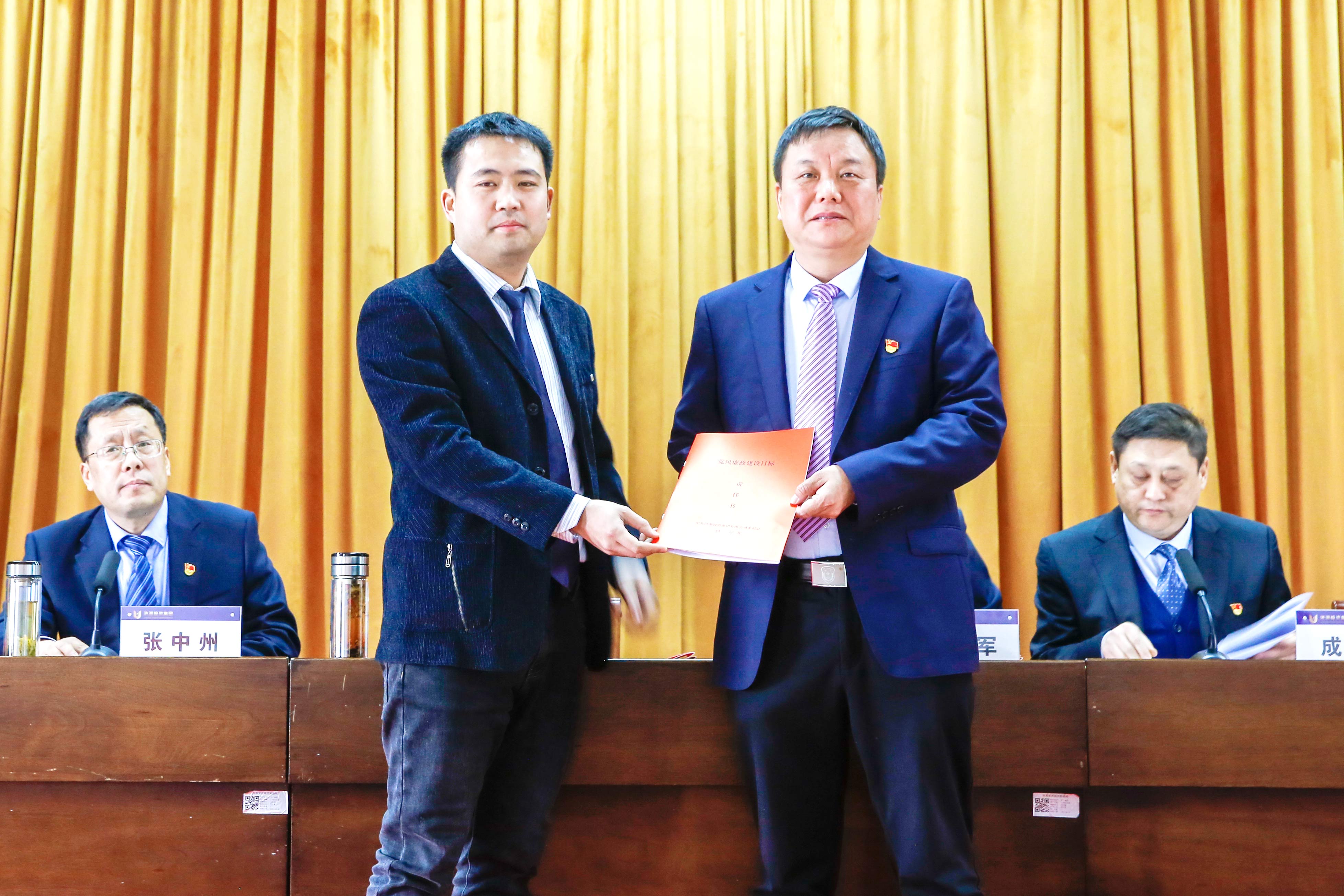 經(jīng)營(yíng)班子成員向總經(jīng)理李慶軍遞交所分管業(yè)務(wù)2023年度目標(biāo)責(zé)任書(shū)