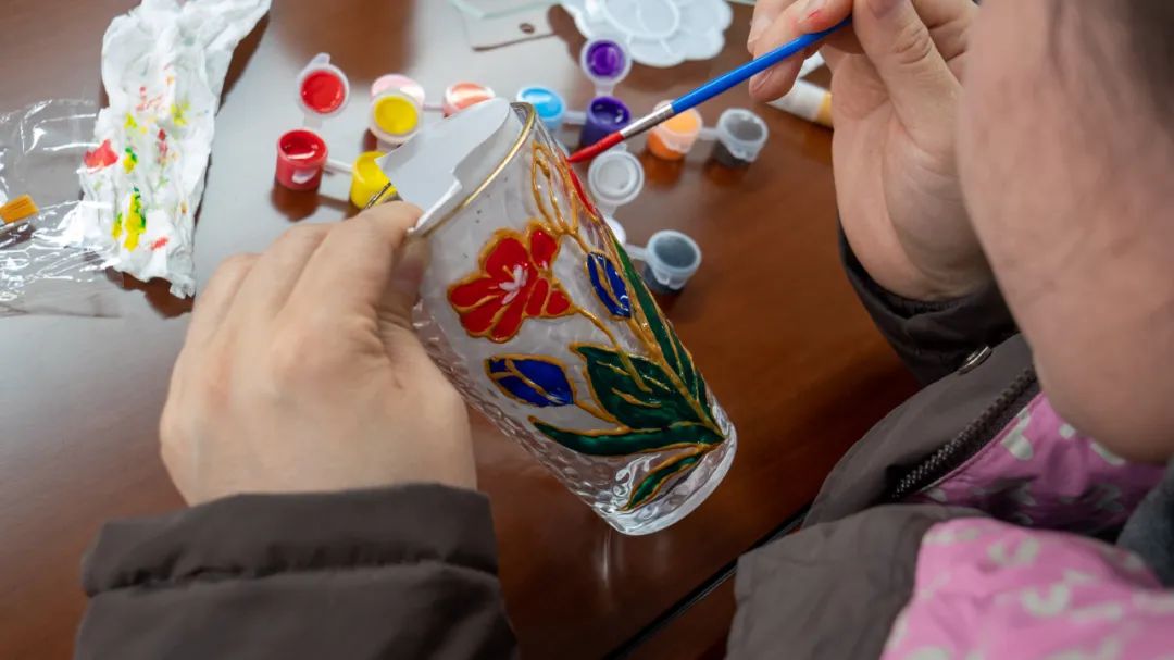 玻璃杯彩繪是近來(lái)熱門的創(chuàng)意手工活動(dòng)。豐富的色彩、創(chuàng)作的專注,在放松身心、緩解壓力之余,更是能起到心靈療愈的效果。活動(dòng)中,女職工們以晶瑩剔透的玻璃杯為畫布,用特制顏料勾勒出春日花卉、山水意境或個(gè)性圖案,每一筆都凝聚著對(duì)生活的熱愛(ài)和未來(lái)美好的期許。?