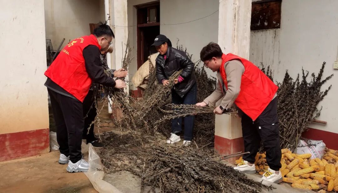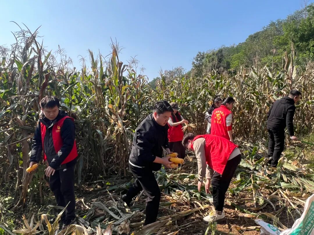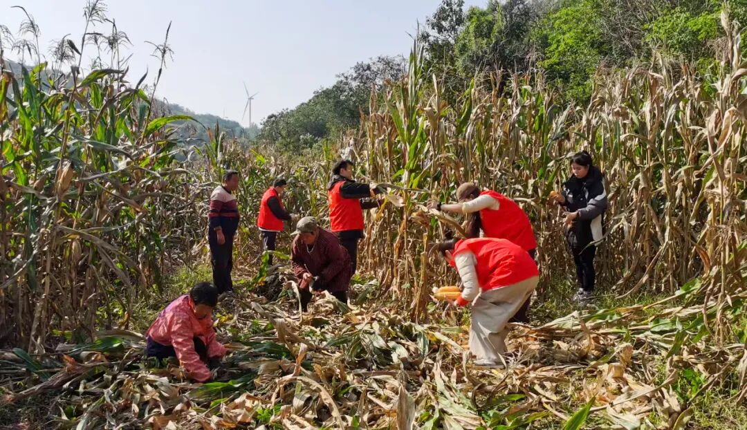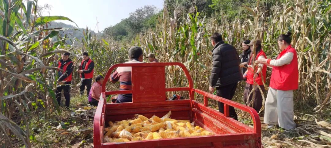 由于今年雨季延遲,導(dǎo)致坡池村玉米收獲期推后,冬季作物播種也面臨壓力。了解到這一緊迫情況后,志愿者們迅速行動(dòng),深入田間地頭,開展農(nóng)田治理與作物搶收工作。大家擼起袖子,俯下身子,與農(nóng)戶們一同搶收玉米,并協(xié)助運(yùn)送歸倉。金黃的玉米地里,“志愿紅”與“秋收黃”交相輝映,構(gòu)成了一幅美麗的豐收助農(nóng)圖,及時(shí)緩解了農(nóng)戶們的燃眉之急。