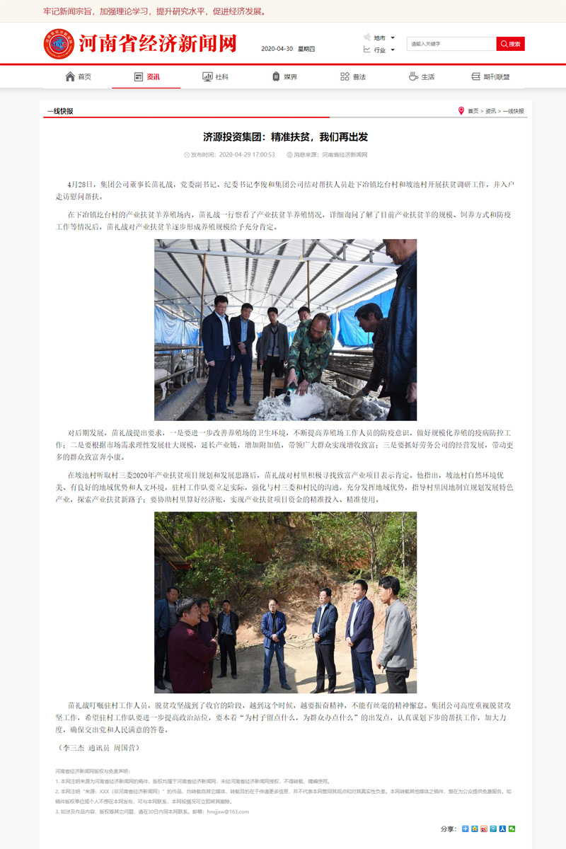 河南省經(jīng)濟(jì)新聞網(wǎng):濟(jì)源投資集團(tuán)精準(zhǔn)扶貧,我們?cè)俪霭l(fā)